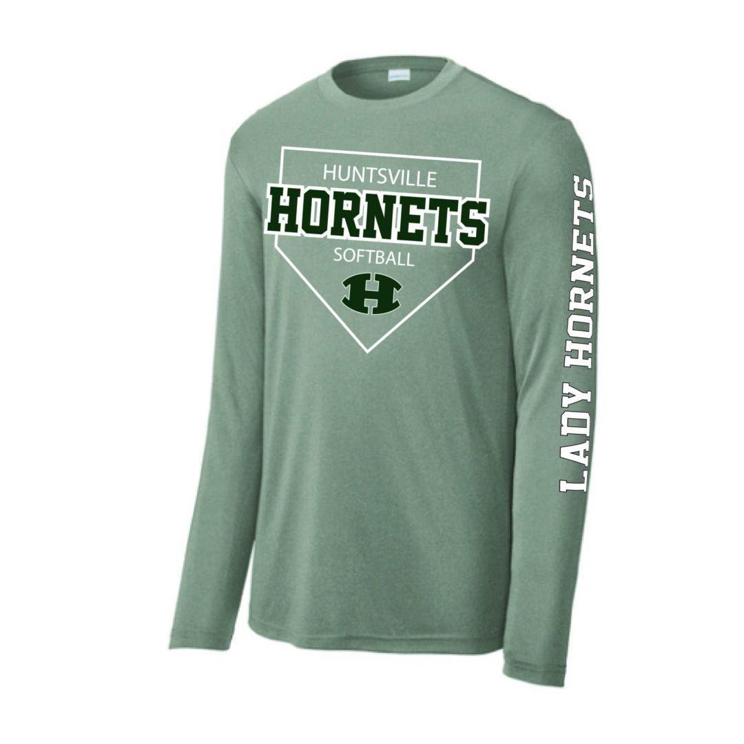 Show your Lady Hornet pride in style! This Sport-Tek® ST350 Dry Fit Long Sleeve tee features the Rocking H Homebase design and comes in Hornet Green, Heather Gray, or White. Perfect for game day or everyday wear—stay cool, dry, and comfortable while supporting your team.